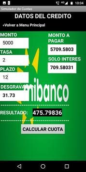 Calculadora para realizar cálculos de cuotas de créditos , incluye el seguro desgravamen del banco, asi como cada mes se actualizara de acuerdo a nuestras necesidades.