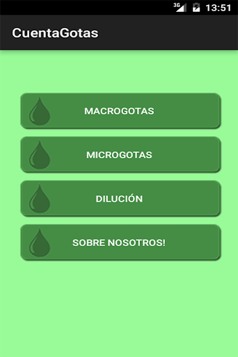 La aplicación realiza macro gotas cálculos de goteo, micro gotas y dilución con el objetivo de ayudar a profesionales de la salud para efectuar los procedimientos de forma más segura y reducir los errores. Tiene la distinción de generar la tabla de consumo por hora.