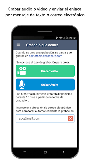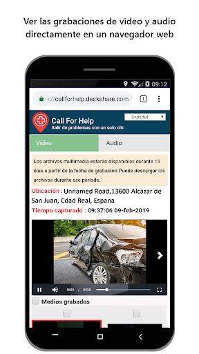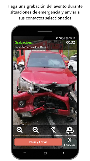 • Grabe y envíe lo que está sucediendo: haga una grabación del evento durante situaciones de emergencia. Puede grabar audio o video y enviar su enlace por mensaje de texto o correo electrónico a su contacto seleccionado. Esto es útil para alertar a su contacto sobre la gravedad de la situación y obtener ayuda inmediata. Posteriormente puede usar estas grabaciones como prueba del incidente.