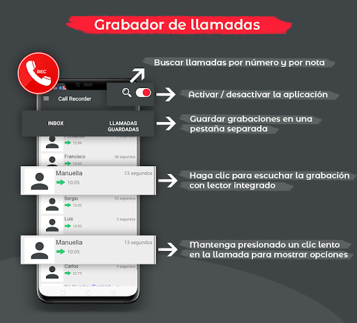 Habilita / deshabilita la grabación de llamadas con un solo clic.