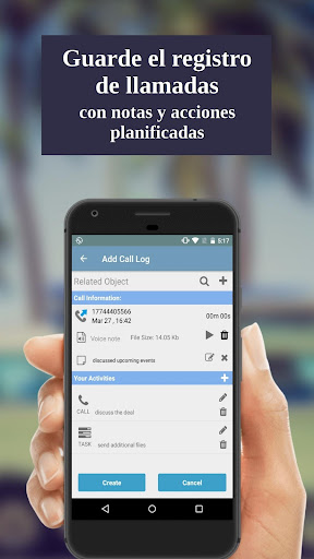 Puede automatizar el proceso manual de ingresar datos sobre cada llamada al CRM. La aplicación permite a los usuarios rastrear la duración y el número de llamadas a cada contacto, permite agregar notas y notas de voz al registro de llamadas, para crear reglas que permitan el seguimiento automático de llamadas para contactos individuales. También le permite agregar y editar la información antes de guardar el registro de llamadas en el CRM.