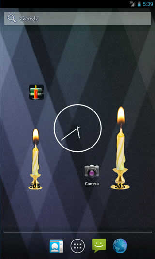 Candle Battery Widget indicates the battery charge level of your device with the burning candle reducing in size with battery discharge.