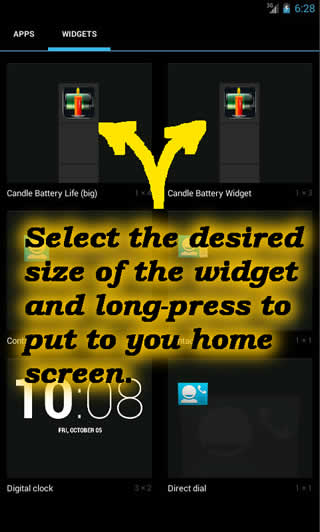 With Candle Battery Widget every time and everywhere you will know if your battery is charged enough to play a game, a movie, or to browse the web.