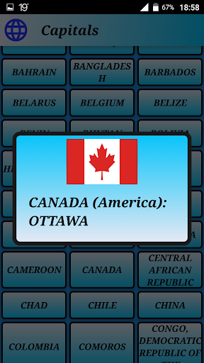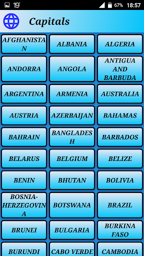 Aplicación sencilla para aprender las capitales del mundo con sus banderas y sus continentes. La aplicación está en lista alfabética para buscar con mayor comodidad los países. Está traducida al inglés, portugués y al español.