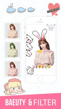 Filters for Selfie let you create your beautiful with cat face, cute doggy face, emoji, monster, glasses, hat, heart effect, flower crown, snap face and funny style. After edit photo, you can easy share your photo on any social network.