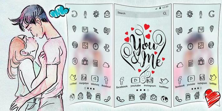 No solamente los iconos, también puedes cambiar el fondo de tu pantalla de inicio con este Cartoon Love para hacer que tu pantalla se distinga.