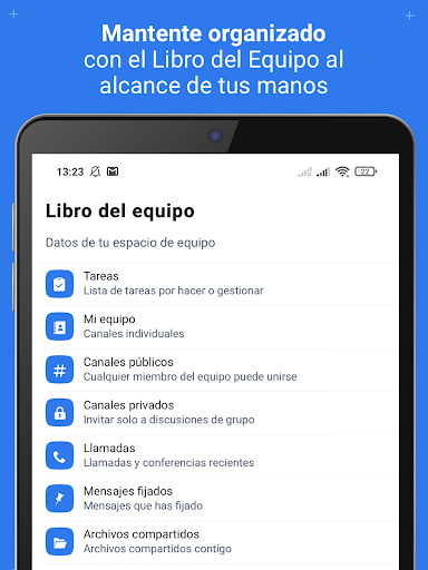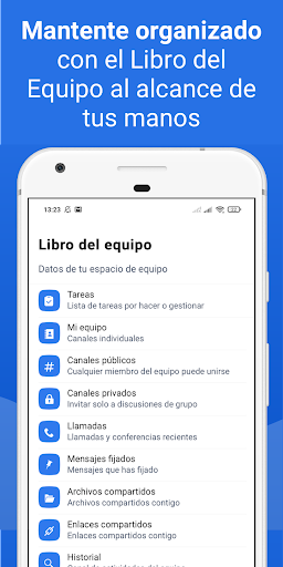 - Libro de equipo: Un lugar único donde organizar tus tareas, conversaciones, mensajes fijados, enlaces y el resto de tu contenido.