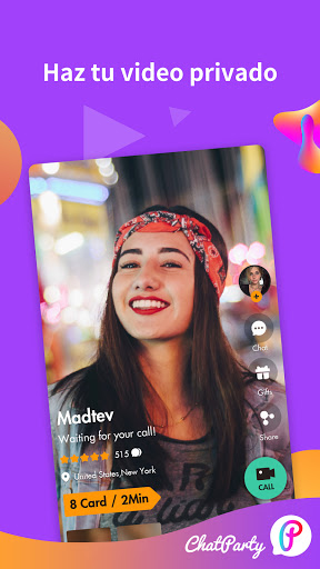 ¿Quieres disfrutar del chat y las salas de chat? Ahora, realiza un chat de video en vivo para hacer amigos y extranjeros en Chatparty. Con esta aplicación de chat de video en vivo y citas, puede conocer, conocer y hablar de amor instantáneamente en salas de chat y línea de chat con amigos y extranjeros de todo el mundo. Video chat aleatorio y llamadas en líneas de chat y salas de chat. ¡Chatea gratis! No lo dudes. Vaya a chatear por video en vivo y hablar de amor ahora mismo. ☽ ★