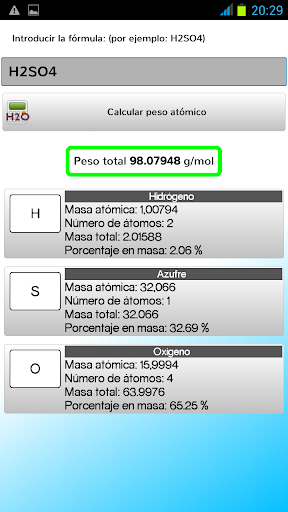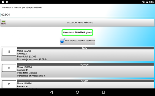 - Calculadora de pesos atómicos a partir de fórmulas, con resultado total y por elementos.