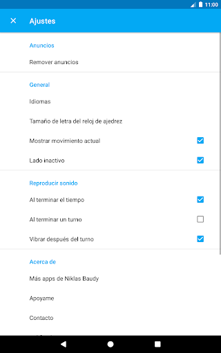 El reloj de ajedrez le permite jugar fácilmente al ajedrez con sus amigos o su familia. Soporta Ajedrez Bala, Ajedrez Blitz, Ajedrez Rápido, Fischer Modus y variaciones personalizadas.