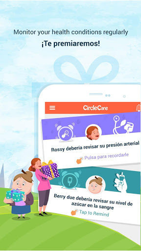 ► CircleCare funciona como un sistema de apoyo familiar mediante el seguimiento de tu presión arterial y glucosa en sangre, permitiendo que los familiares puedan monitorizar, ayudar, y motivar a los seres queridos para que se sientan felices y se mantengan saludables.