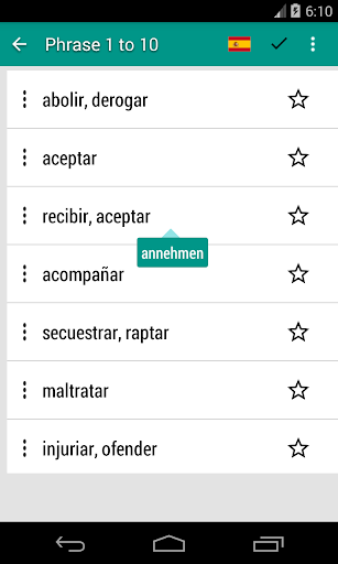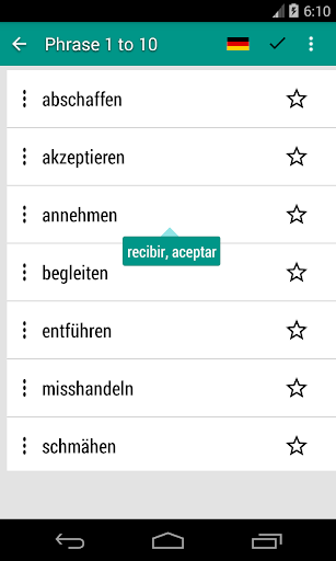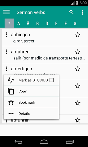 • Almacene los verbos de uso frecuente en los favoritos
