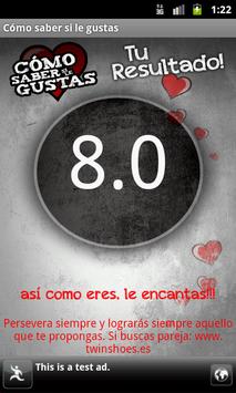 • La aplicación “Cómo Saber si le Gusto” te dará un resultado objetivo del grado en el que esa persona siente atraída hacia ti. La puntuación máxima es 10, cuanta más alta sea la puntuación mayor interés.