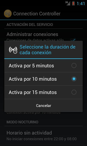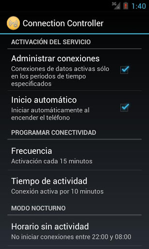 Esta aplicación permite activar y desactivar las conexiones de datos (3G/WiFi ) de acuerdo a períodos de tiempo configurables, pudiendo además definir un horario nocturno donde no se quiera contar con actividad en la red de datos.