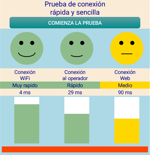 Esta separación en 3 diferentes pruebas de medición lo ayuda a detectar rápidamente el origen de un problema de conexión o una lentitud.
