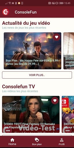 Gracias a la aplicación móvil ConsoleFun, encuentre numerosas examinaciones escritas y video, y artículos hechos por los miembros de ConsoleFun.FR.