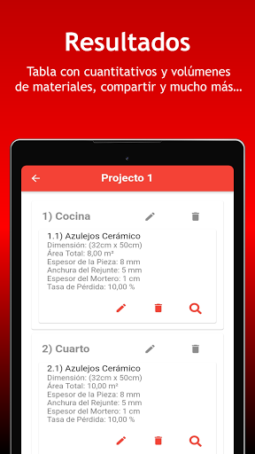 Esta aplicación te ayuda en el cálculo de los materiales necesarios para: