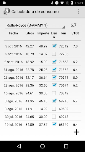 Calcula y muestra el consumo medio de gasolina entre dos repostamientos (de un tanque lleno a otro) y el consumo medio total.