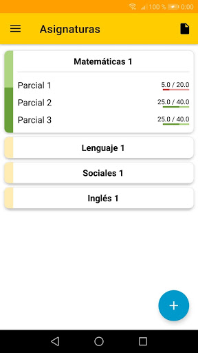 - Materias: Podrás saber cuál es la nota actual y cuánto falta para alcanzar una nota, sin tener que rayar cuadernos y hojas que se pierden y no aparecen más.