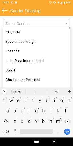 Courier Tracking es una aplicación diseñada para centralizar las instalaciones de seguimiento disponibles en las compañías de mensajería más importantes de todo el mundo en un solo lugar para su comodidad. Se necesita las instalaciones de seguimiento de las compañías de mensajería y logística más reconocidas, como FedEx, DTDC, TNT, USP, 2Go, Amazon, y más e integranlos en un solo lugar para garantizar que las personas no tengan la web para poder un seguimiento de su servicio de mensajería.