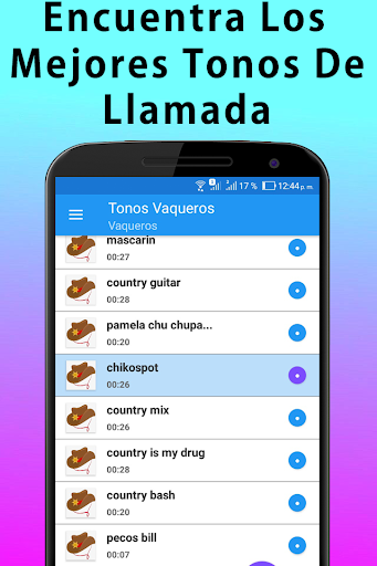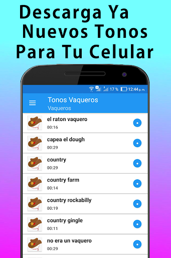 Disfruta de los mejores tonos populares de vaquero gratis, tonos de contacto del salvaje oeste, campanas de alarma, tonos country, notificación Tonos de vaquero golden years old es la aplicación de ringtones gratis donde encontraras lo mejor de las canciones country, ringtones de musica romantico, ringtones llamada de sonidos gratis en ingles escuchar a todos los sonidos de canciones de moda tonos como: bueno, feo, malo, chikospot, country bash, country farm, country is my drug, country gingle, country rockabilly, country song, country mix, the cowboy mouse, mascarin, no era un vaquero, pamela chu apesta ..., cowboy rocker, pecos bill, cowboy rockanrolero, country dance, country guitar.