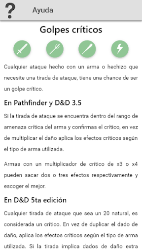 Está App está inspirada en iCrit y iFumble de Paizo, las cuales están basadas en sus mazos de cartas Gamemastery Critical Hit and Gamemastery Critical Fumble.