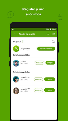 Sin una contraseña todas las conversaciones con un contacto se bloquearán. El usuario puede seleccionar contraseñas diferentes para cada contacto.