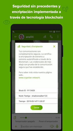 Crypviser Secure Messenger ha introducido una nueva era de criptografía basada en tecnologías Blockchain. Los ataques a tus mensajes de texto son imposibles porque las cruciales llaves de cifrado son verdaderamente autenticadas y distribuidas a través de los nodos de la Blockchain.