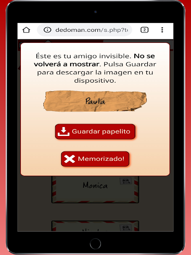 NOTA: El secreto está garantizado. Aunque un participante podría abrir un sobre que no es el