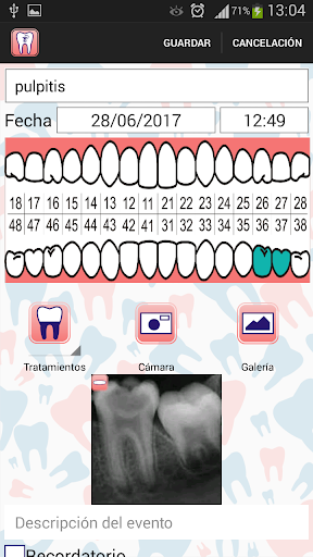- visualización de la galería de fotos de imágenes de rayos x de los dientes.