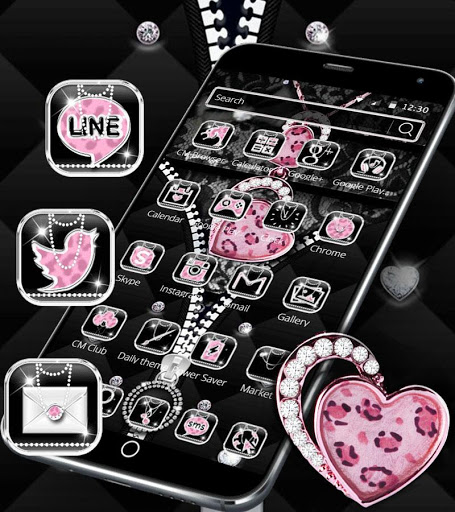 Glitter leopard print theme has love heart zipper lock screen with diamond pattern lock and diamond password lock for android safety. You are able to enable fluffy screen lock to keep your privacy safe with this pink leopard safe launcher . Remember you need to enable the safe launcher first together with the diamond leopard theme .