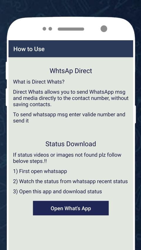=> Direct Whats allows you to send WhatsApp msg and media directly to the contact number, without saving contacts.