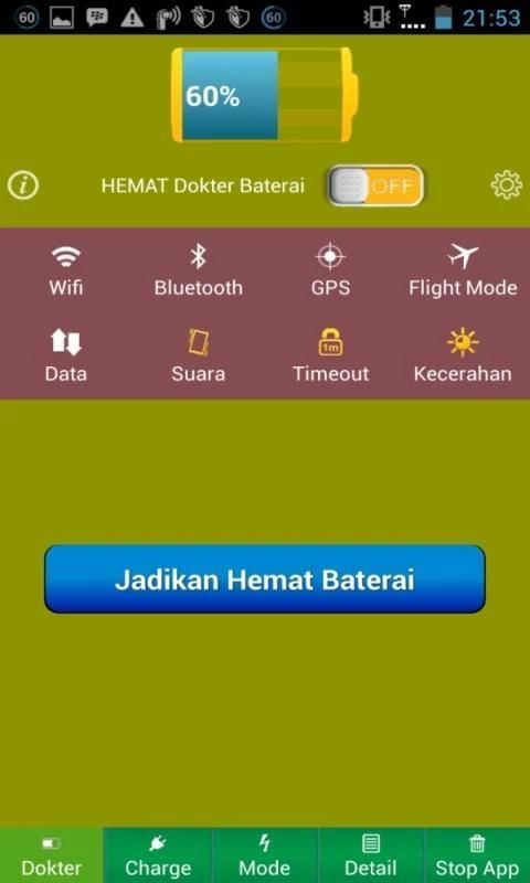 Aplikasi Dokter Baterai ini tidak hanya mengoptimalkan dan mencegah baterai tablet dan telfonmu cepat habis. Namun juga bisa mendeteksi / cek kerusakan plus solusi memperbaiki fungsi baterai handphone agar tahan lama.