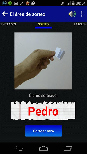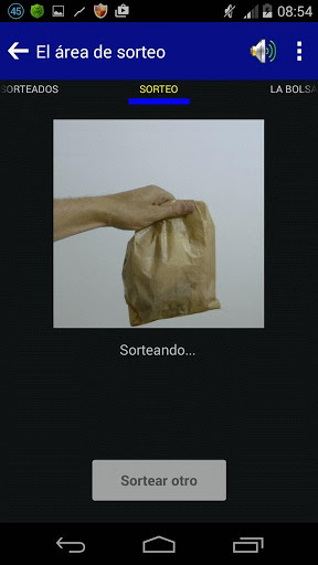Ponga los números o nombres en la bolsa de papel, agite la bolsa y vea la tira de papel con cada nombre/número sorteado.