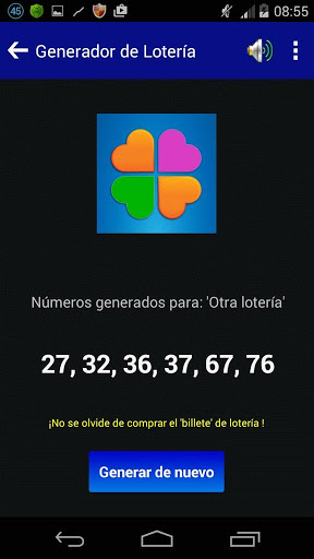 • Nueva función: Permite compartir resultados de sorteos o números de lotería generados por esta app, a través de Facebook, Google , Email, Evernote, Whatsapp, etc.