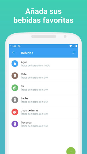 Té, café, zumo, etc. Añade sus bebidas favoritas y sus índices de hidratación para calcular correctamente la cantidad de agua necesaria para mantenerse hidratado.