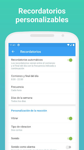 Puede activar recordatorios automáticos o establecerlos manualmente para que el recordatorio le recuerde a las horas fijadas.