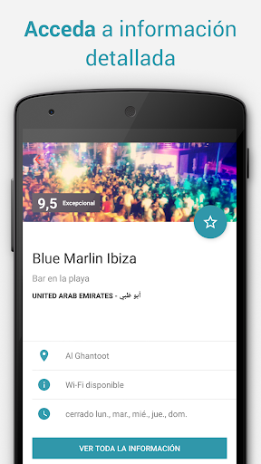 Encuentra los mejores restaurantes, tiendas, atracciones, hoteles, bares, etc. Busca por nombre, explora las categorías o descubre lugares cercanos usando el GPS de tu dispositivo, incluso sin conexión a Internet.