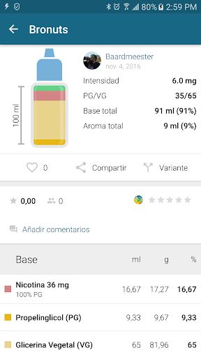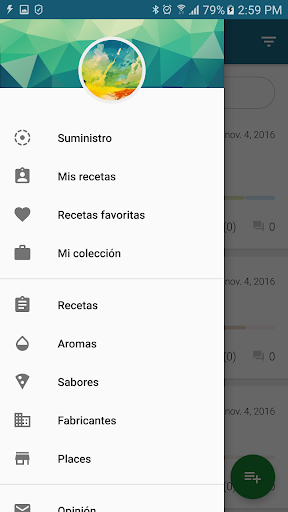 -Ver informacion sobre fabricantes y aromas. -Suscribirte a otros ususarios.