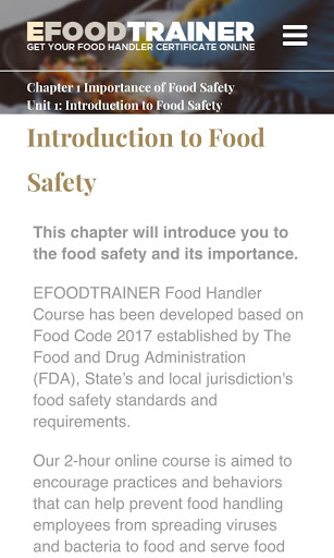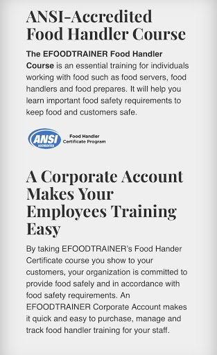ANSI-Accredited EFOODTRAINER Food Handler Course is now available through the app