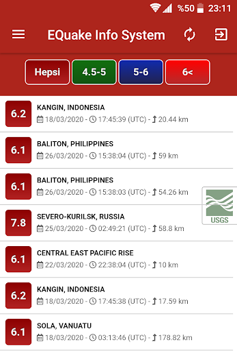 Esta aplicación fue creada para rastrear terremotos en todo el mundo y usa "EE. UU.Servicio Geológico (USGS) & quot;datos.
