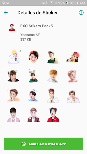 EXO Stickers KPop for whatsapp es una aplicación de adhesivos para redes sociales que le facilita el envío de adhesivos a sus amigos, familiares y otros.