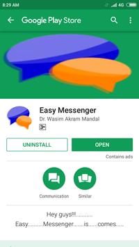 The wait is finally over.. Easy Messenger is the easiest and simplest form of communication now at your fingertips..it’s an application to connect, to share and to whisper or shouting out loud..with your family and friends.