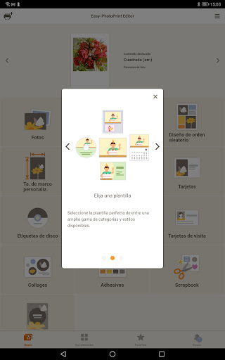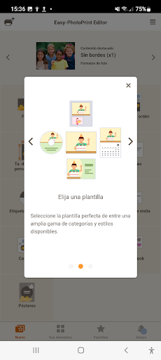 Solo tiene que seleccionar el tipo de plantilla que desea crear, editarla, decorar sus fotos e imprimir.