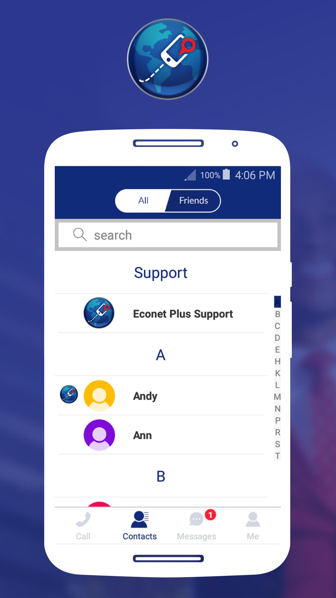 Econet Plus is an app that allows you to call mobiles and landlines around the world, send SMSes and chat.