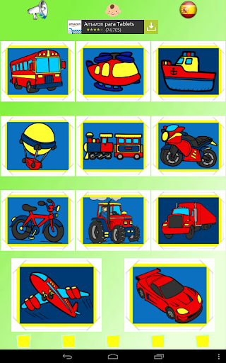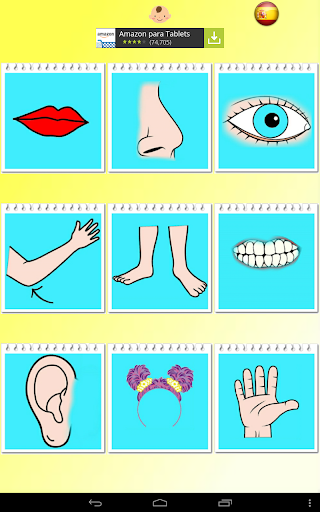 , con la que se desarrolla el aprendizaje y en la que pueden ver los simpaticos objetos y escuchar, tanto en ingles como en español, como se pronuncia el objeto con