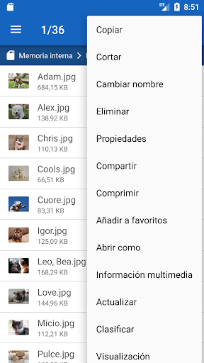 ✓ Diversos modos de visualización (lista, lista corta, cuadrícula y vista previa)