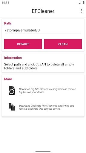 This app will help you delete all empty folders and subfolders on your device. Also you can select folder to delete all empty folders and subfolders only inside of it.