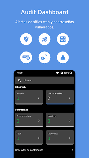 - Compruebe automáticamente si sus contraseñas son antiguas, débiles o están comprometidas.
