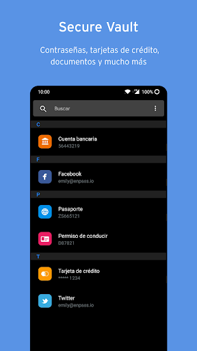 - Enpass no solamente se encarga de sus contraseñas, sino que mantiene seguras todas sus tarjetas de crédito, permisos de conducir, tarjetas de fidelidad y de afiliación y otros archivos personales e identidades.
